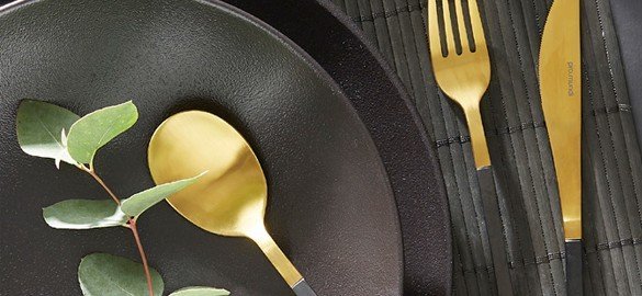 A cutlery with a refined and slender design, very contemporary A two-material black PVD/gold steel finish gives it a great presence on the table