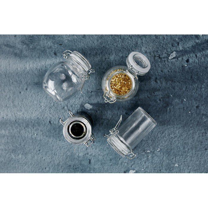 Small glass appetiser with a hermetic seal. Can be used open or closed.
