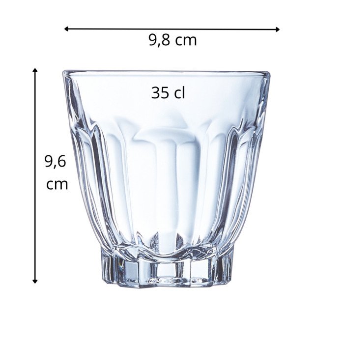 The Tumbler Glass 35 cl Arcadie Arcoroc is a stylish and durable glass. The arcadie is ideal for serving water, soft drinks, juices, cocktails, and spirits. With its elegant yet practical design, this glass is suitable for restaurants, hotels, bars, and home use. Straight-sided design with a smooth, classic look that fits into any table setting. The shape makes it stackable, saving storage space in bars and kitchens. The solid base provides a secure foundation, reducing the risk of tipping over. Suitable for serving iced tea, lemonade, smoothies, and mocktails.