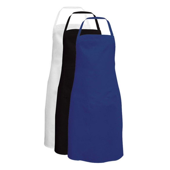 65/35 polycotton self fabric ties length 75 cm 1 pocket at chest for pen and 1 pocket at lower left side adjustable neck by slider to suit all sizes