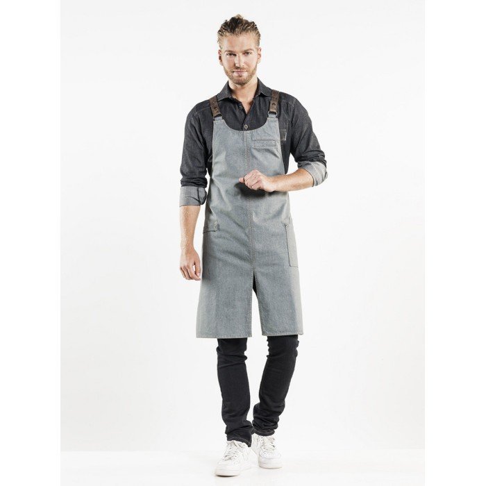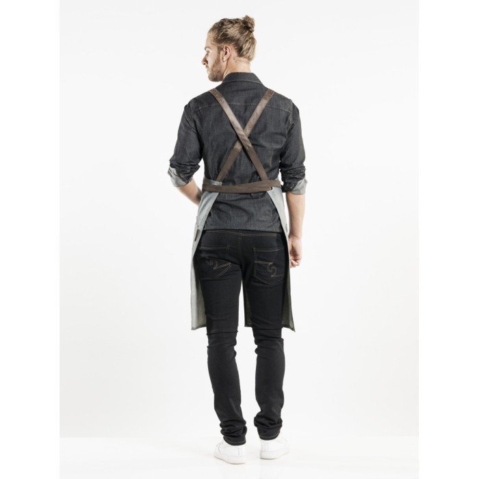 Bib apron Forene denim grey W70XL90CM 100% COTTON LEATHER STRAPS Chaud Devant