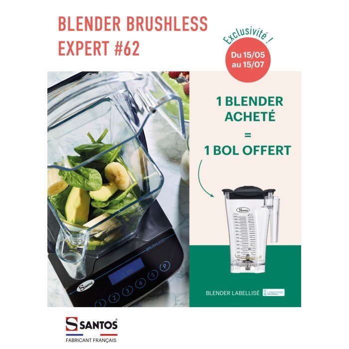 Specially for juice bars, perfect for making smoothies. The #62 blender can be used for all types of cocktails, smoothies, fruit juices, milkshakes, granitas, iced coffee, etc. Ideal for juice bars, fast food outlets, etc. It will fit in anywhere with its understated design and small size.
