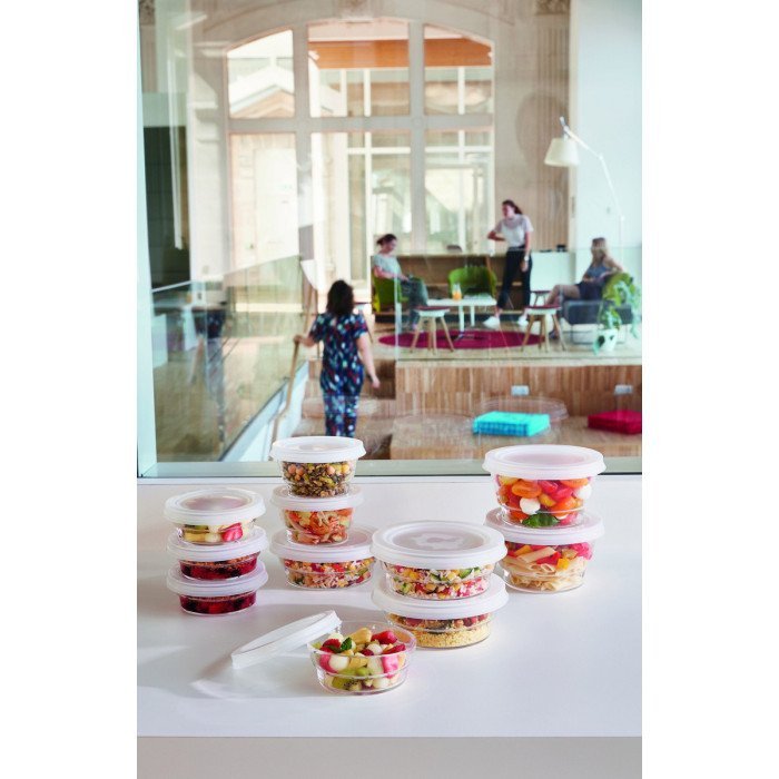 A full range adapted to current take -out and deliveries, coworking and instructions for the lids. The perfect balance between design and functionality: the items are light and resistant at the same time (tempered glass). Made in France, the glass containers are healthy (not porous), and reusable.
