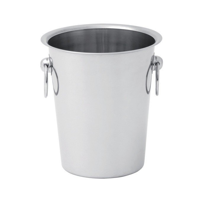Wine or Champaigne bucket made from mirror-finish polished stainless steel with ring handles.