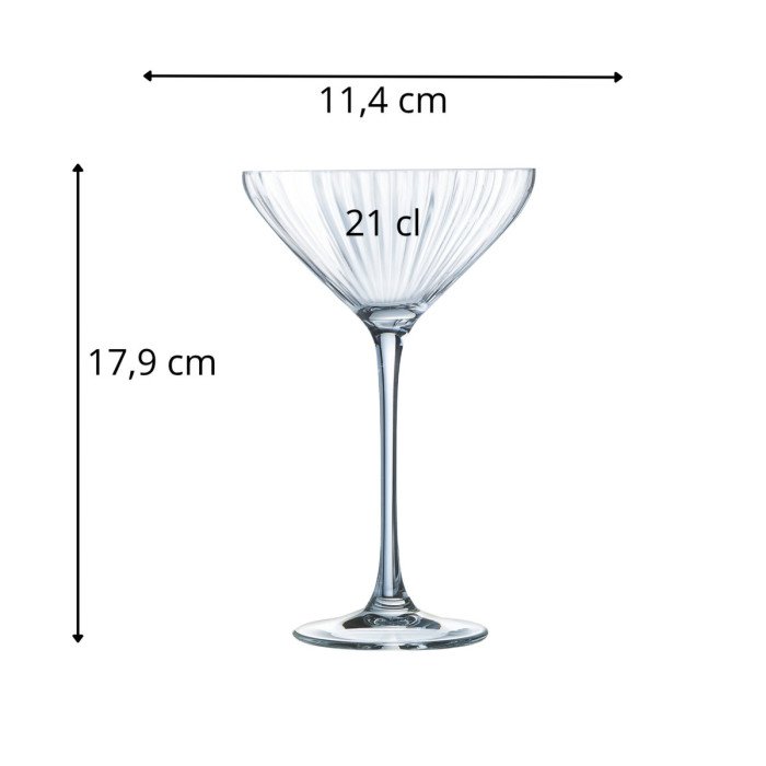 Cocktail Glass 21 cl Symetrie Chef & Sommelier is a premium cocktail glass designed for both style and functionality, likely part of the Chef & Sommelier brand, known for their elegant and high-quality glassware. With a capacity of 21 cl (centiliters), it’s an ideal size for serving cocktails. The “Symetrie” line likely features a balanced and symmetrical design, offering a sleek and modern appearance. These glasses are ideal for cocktails such as martinis, daiquiris, or other classic drinks. The glass design not only enhances the presentation but can also help enhance the tasting experience