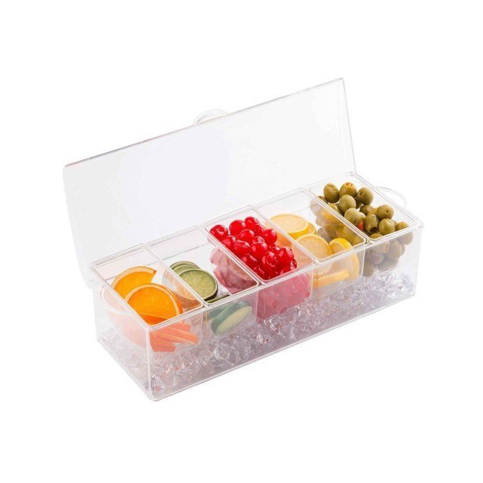 CONDIMENT HOLDER WITH (5) 56.5CL INSERTS L41XW41.5XH12.5CM POLYSTYRENE