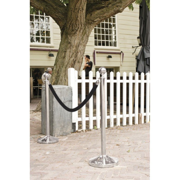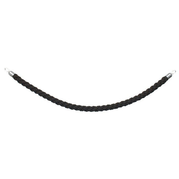 Black satin rope for barrier with chrome tip, 1.5m long.
