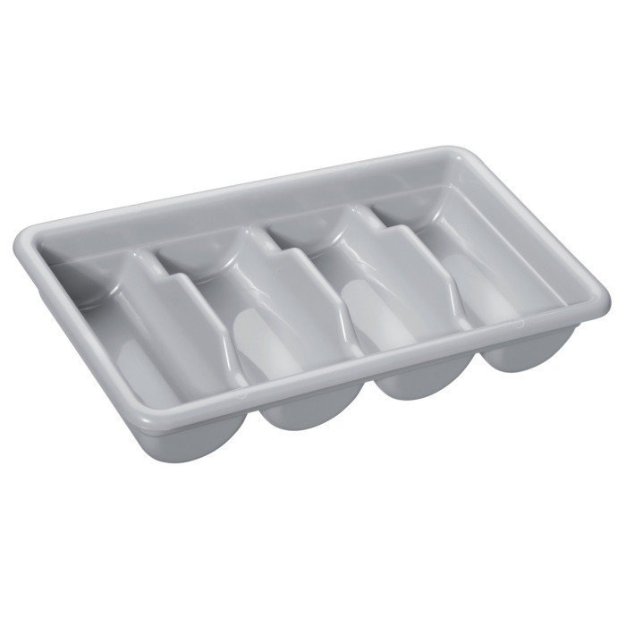 4 compartments, no lid. Grey.