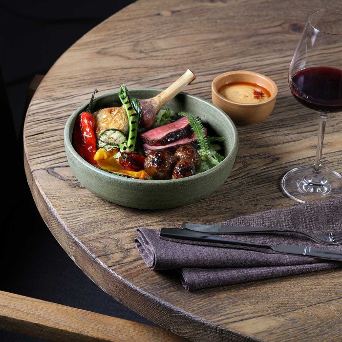 The deep coupe plate 16cm beige from the Selva series by Rak Porcelain is a refined and durable addition to the Rakstone range, crafted to meet the demanding requirements of catering professionals. Made from high-quality porcelain, this deep coupe plate combines resistance and elegance, ensuring long-lasting performance in even the busiest environments. Its beige color adds warmth and sophistication to your table service while maintaining the natural, authentic look characteristic of the Rakstone collection. This 24cm deep bowl plate is versatile and practical: Dishwasher-safe, allowing for easy cleaning and maintenance. Microwave-safe, providing flexibility for reheating or serving warm dishes. Stackable, facilitating organized storage and space-saving in professional kitchens. Designed to endure frequent use while preserving its appearance and quality, the Selva series soup plate is an excellent choice for those seeking reliability and aesthetic appeal at a competitive price. It combines functionality and style, making it ideal for upscale catering environments.