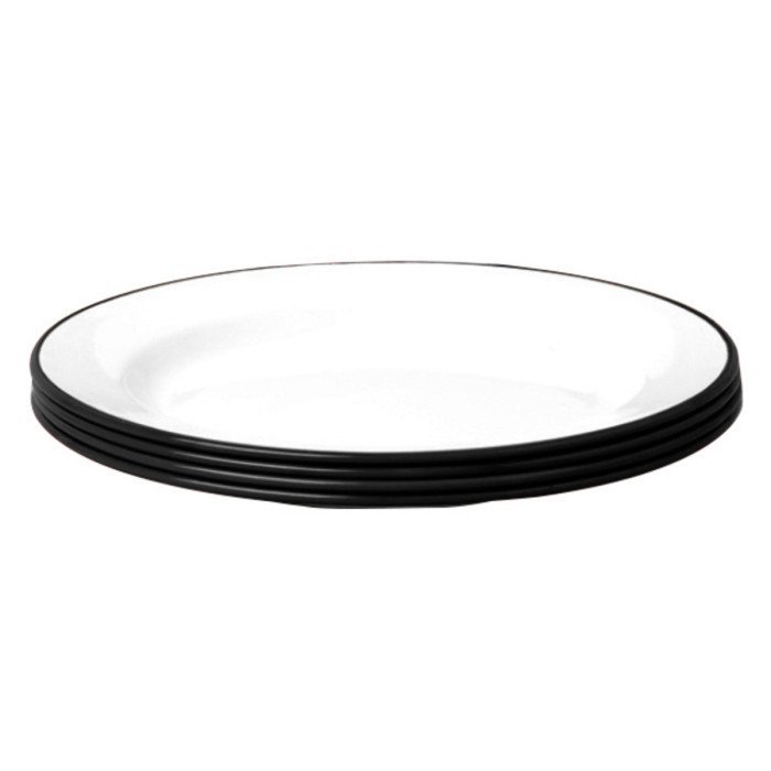 FLAT PLATE STEEL ENAMEL ROUND WHITE 24CM WITH BLACK RIM (4 PIECES)