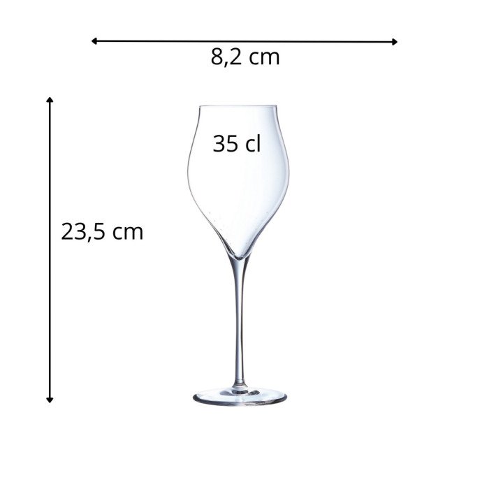 The Exaltation Flute 35 cl by Chef & Sommelier is a larger, sophisticated glass designed to elevate the experience of drinking sparkling wines like Champagne, Prosecco, or sparkling rosé. The larger size of this flute offers more room for the wine’s effervescence to develop while maintaining an elegant shape. 35 cl (350 ml), a larger-than-standard flute size that allows for more wine or sparkling beverages to be served while still enhancing the visual and aromatic experience of bubbles. he flute’s narrow shape helps retain the wine’s carbonation by reducing the surface area exposed to air. The longer and more voluminous bowl offers a better appreciation of the wine’s effervescence while capturing its delicate aromas. The larger capacity makes it ideal for more celebratory servings, giving room for both bubbles and aroma to develop in sparkling wines. It’s also great for serving cocktails or sparkling beverages.