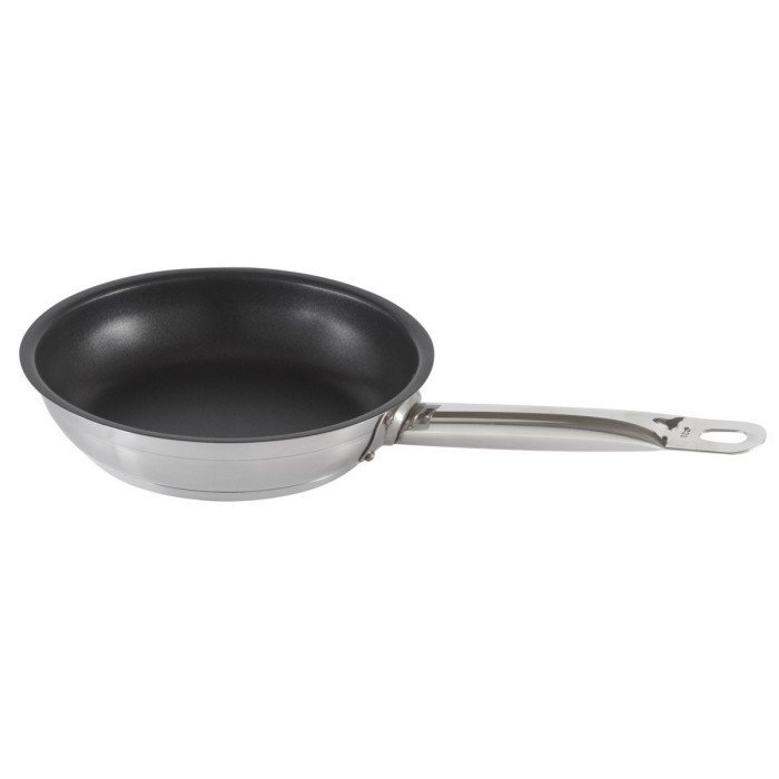 Stainless steel offering excellent resistance to corrosion and food acids. Encapsulated bottom (stainless steel – aluminium – stainless steel) allows optimal heat diffusion. Polished satin interior and exterior finish with mirror polished collar. The inside of each piece is gauged for greater better accuracy. Pouring edge. Stay-cool tubular stainless steel handle (saucepans and frying pans) and mountings (braising pans, stock pots and cooking pots) in very strong welded stainless steel. Stackable easy-to-store lids. Easy maintenance thanks to the rounded corners. Tests and trials carried out in laboratories and in accordance with the standard NF EN12983-1.