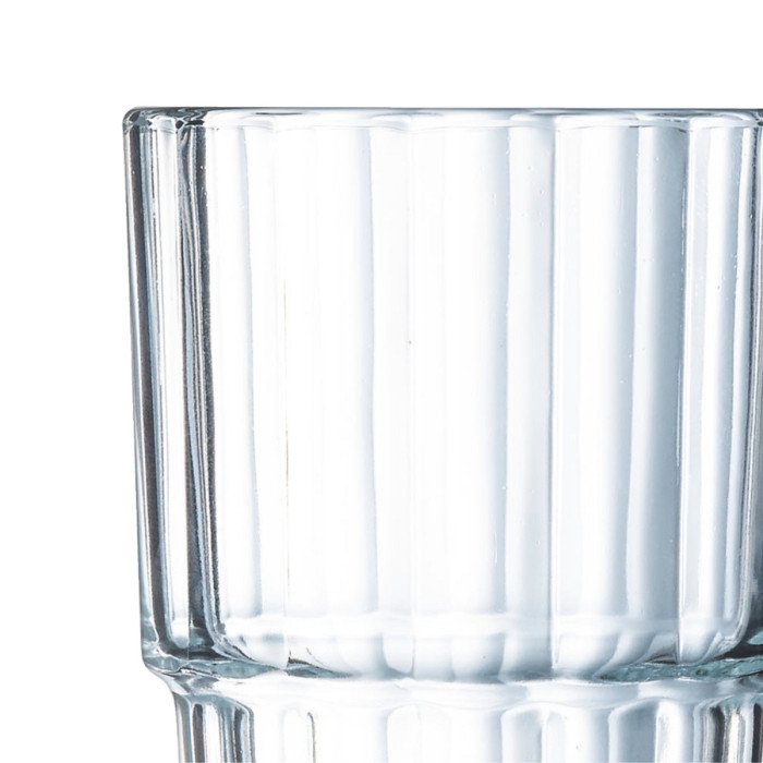 The ribbed and contemporary lines of the Norway collection inevitably evoke the Nordic style. They conquered collective catering, also thanks to their service qualities. The five cups are stackable and practical to quickly rid the tables and facilitate storage. These soaked glasses show daily resistance and the longevity you expect from your equipment. The ribbed lines mask limestone which can sometimes appear after many washes.