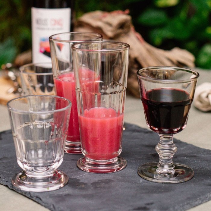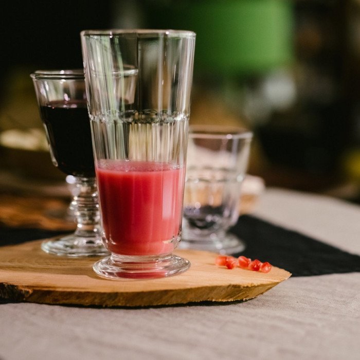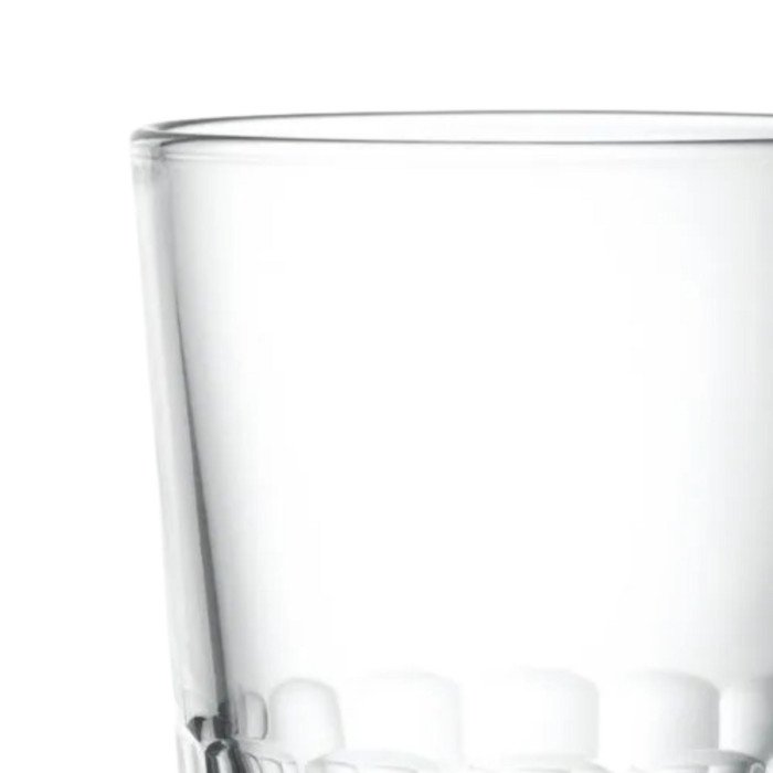 Long drinks glass made from pressed glass, parison with flat sides. Based on 19th century glassware collections.