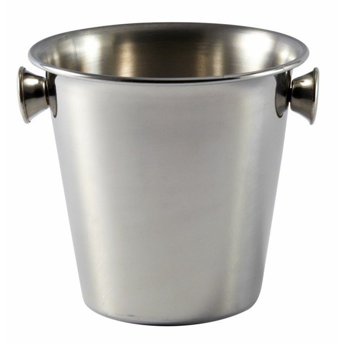 Stainless steel ice cube bucket. Mirror polished outside / satin finish inside