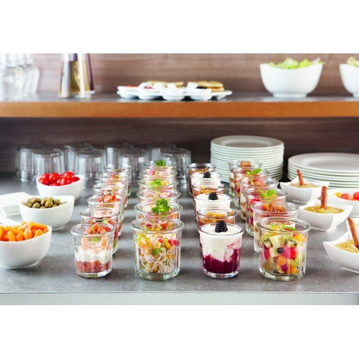The Eskale Tumbler 9 cl Arcoroc is a small, robust glass, perfect for serving concentrated drinks and small portions. The Eskale collection is known for its unique, faceted design, which gives it a textured and contemporary look. The thick, sturdy base adds stability and makes it easy to handle. The compact shape is stylish and functional. The Eskale tumbler is durable, impact-resistant, and can handle temperature variations. It is suitable for both home and professional use. Its distinctive design also adds a modern touch to any setting.