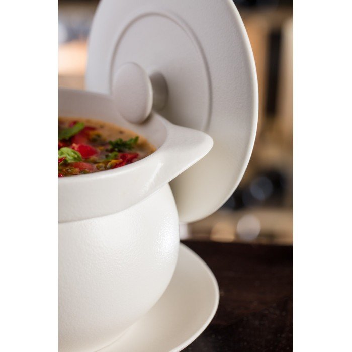 Chef’s fusion offers casserole pots, soup tureens, plates, saucepans and ramekins, ideal for cooking and keeping warm. High resistance and with optimal ergonomics, the collection is available in 4 colours, created to last.