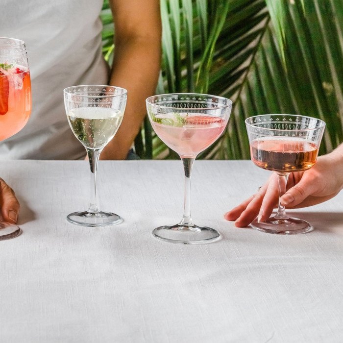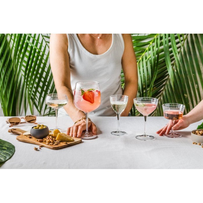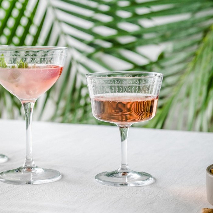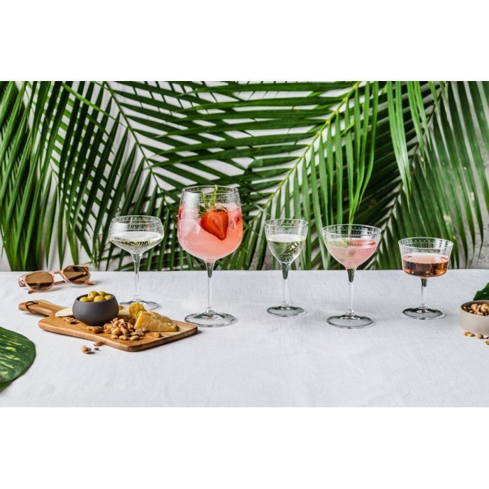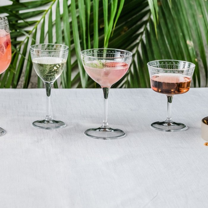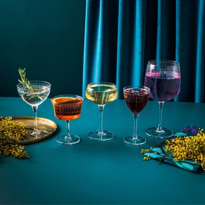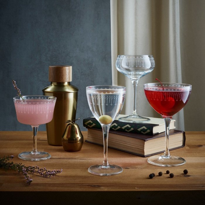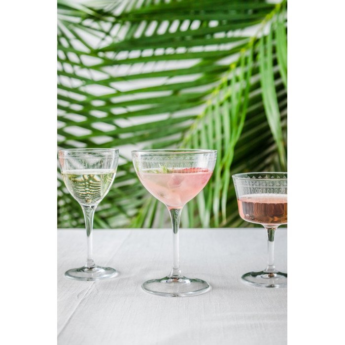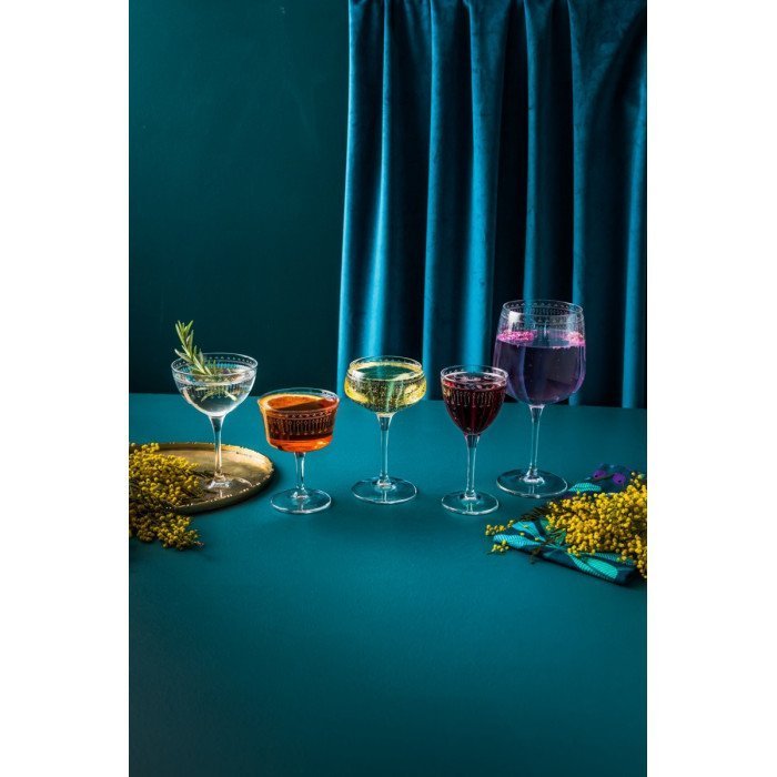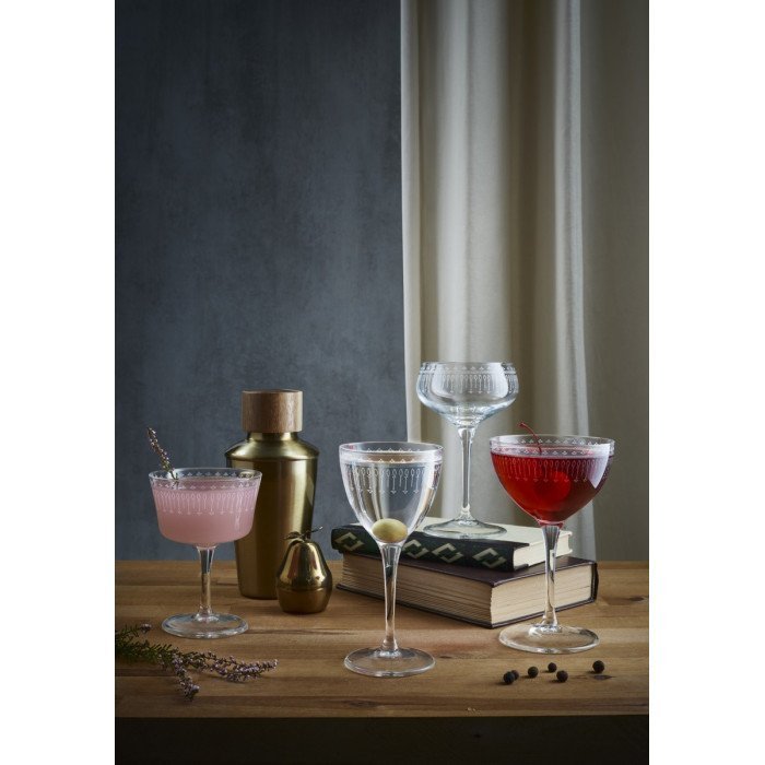 A new range of cocktail glasses, which is inspired by the influences of the 20s where a new architectural style appears. The frieze that circles the glass brings a vertable vintage touch, very popular at present.
