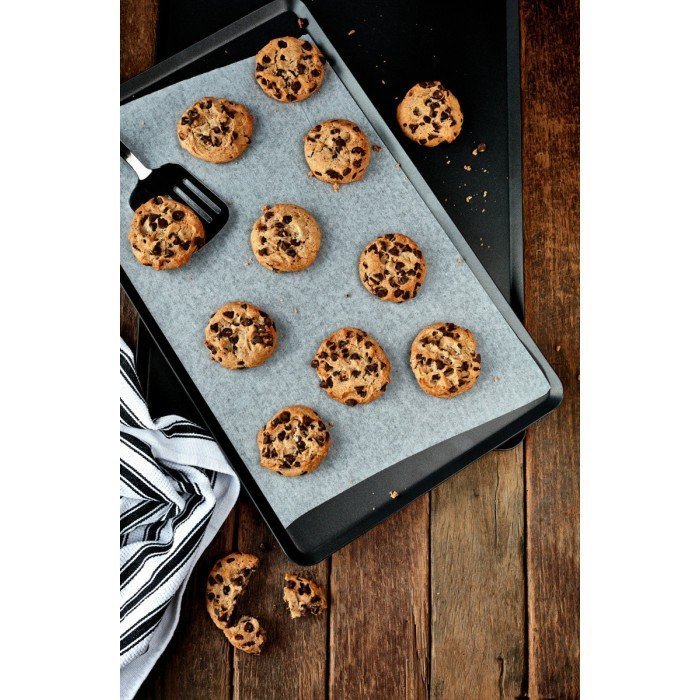 Range of professional aluminium sheets with multilayer coating. Flared edges prevent preparations from flowing off the sheet during cooking. Excellent heat transmission and distribution.