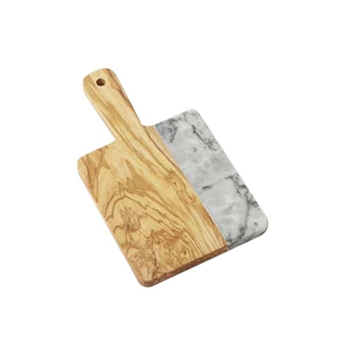 OLIVE WOOD GRAY MARBLE SERVING PEEL 15.2X8.9XH1.3CM OVERALL LENGTH 20.3CM