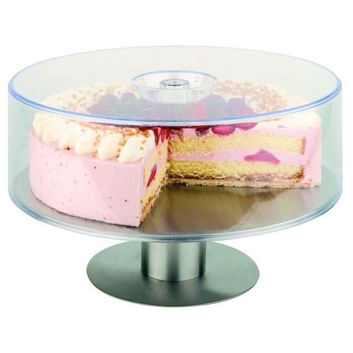 Satin-finish polished stainless steel cake stand, rotating plate, foam coating under the foot to protect furniture from scratches, cloche not included (sold separately).