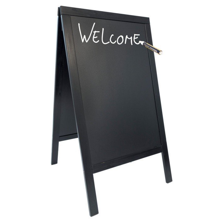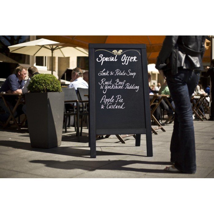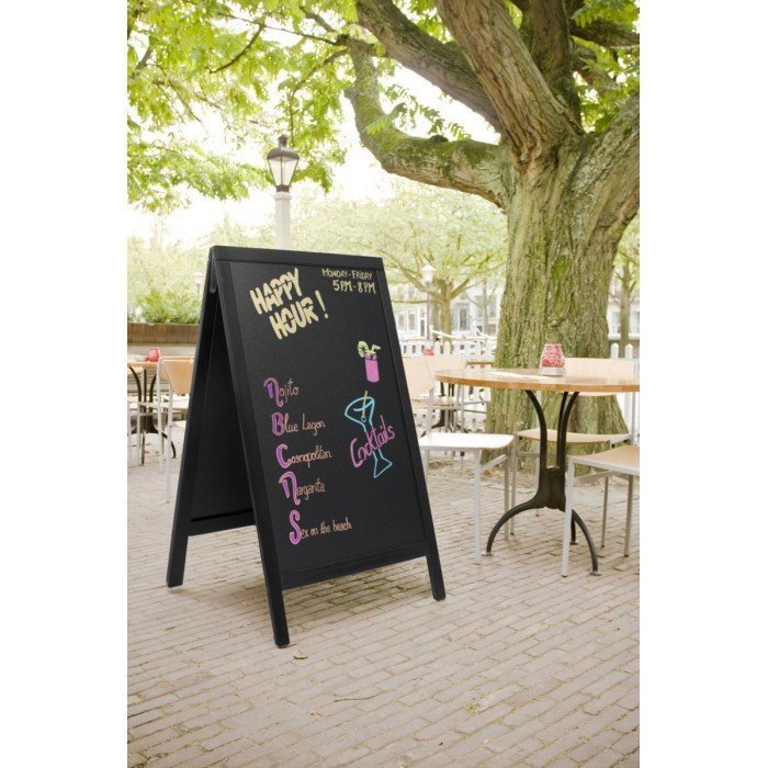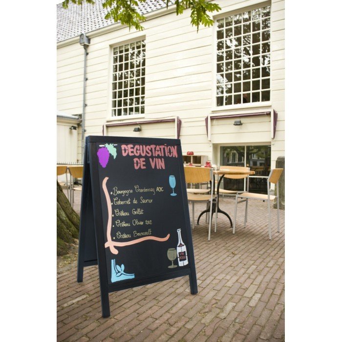 Sandwich pavement boards are made from two high-quality slates linked by a chain. For indoor and outdoor use, thanks to three coats of protective varnish. These boards are made with hardwood and are resistant to scratches, UV rays and heat distortion. Can be written on with a chalk marker.