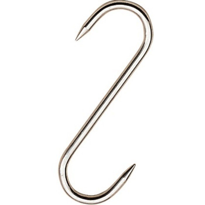 The butcher’s “s” shaped hooks, or esses, can be hung on all types of rail or rack.