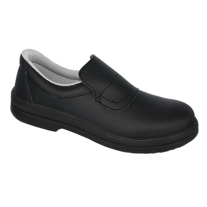 Microfibre safety loafer for men and women. Supportive elastic beneath the tongue. Breathable lining. Compliant with the EN ISO 20345 S2 SRC standard.