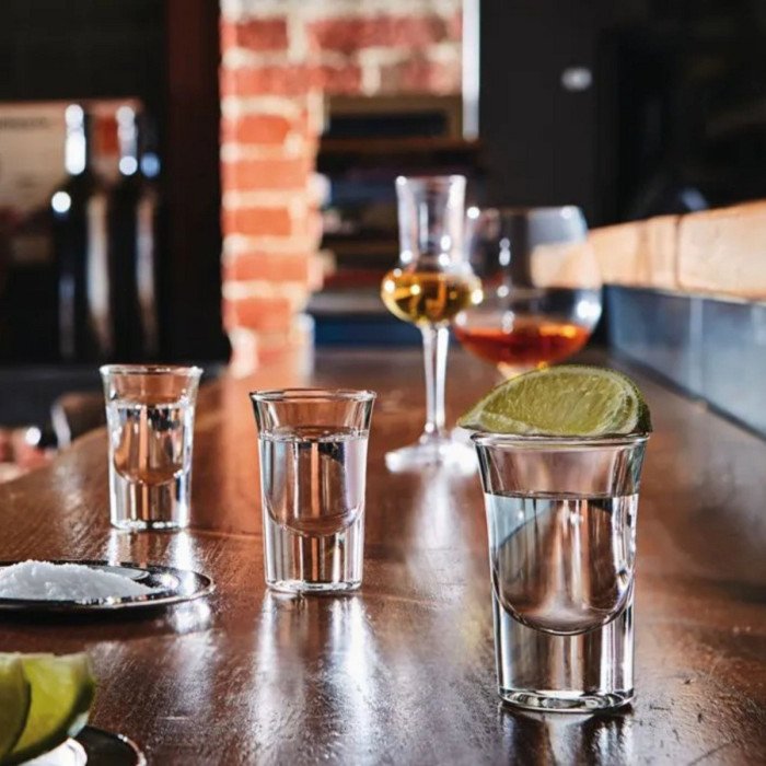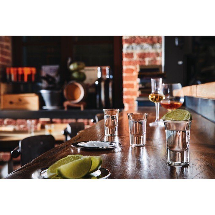 Heavy-based shot glass, for a more full-bodied feeling.