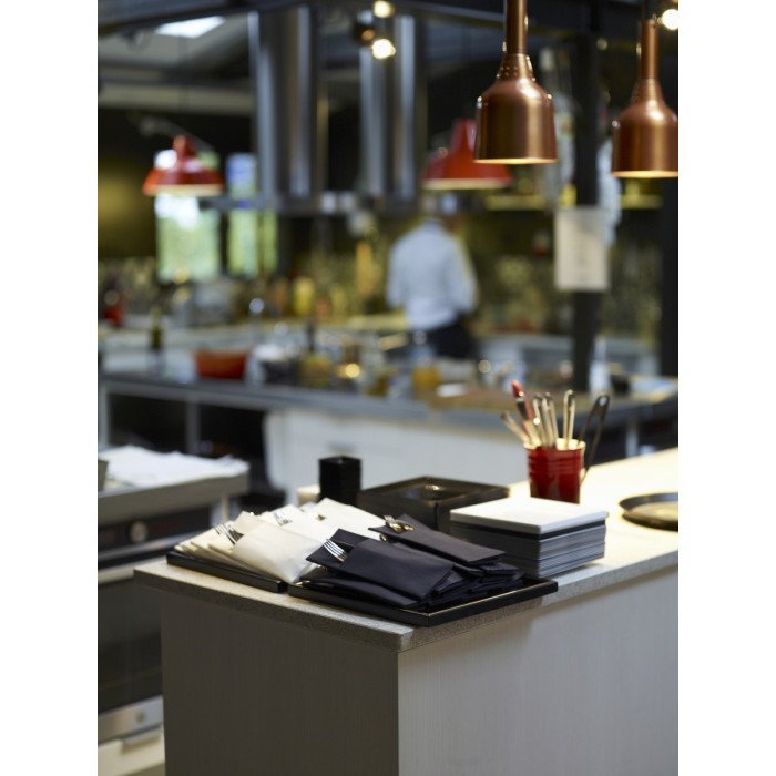Paper sleeve with 40x48cm pre-folded Dunilin napkin. Cutlery can be slipped inside. An original and on-trend solution.
