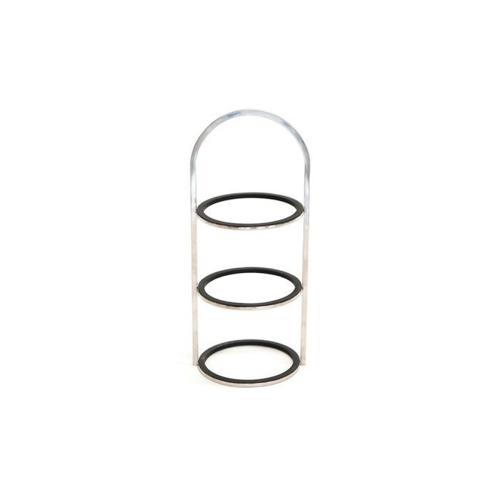 The Tilt range of buffet display stands includes upright round metal columns in softly blackened steel or polished stainless steel, compatible with all current ranges of solution. Choose from bowls made from solid walnut, spun brushed brass and luxury bases. The stands feature a rubber seal, adjusted with precision, which gently grips the surface of the bowls, meaning they can be used at different angles depending on the display requirements. They also feature small rubber feet to protect surfaces.