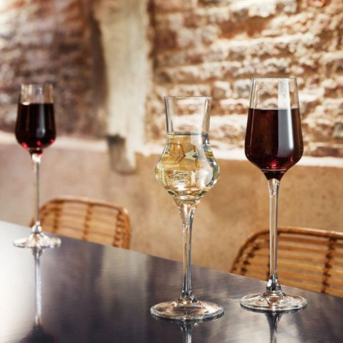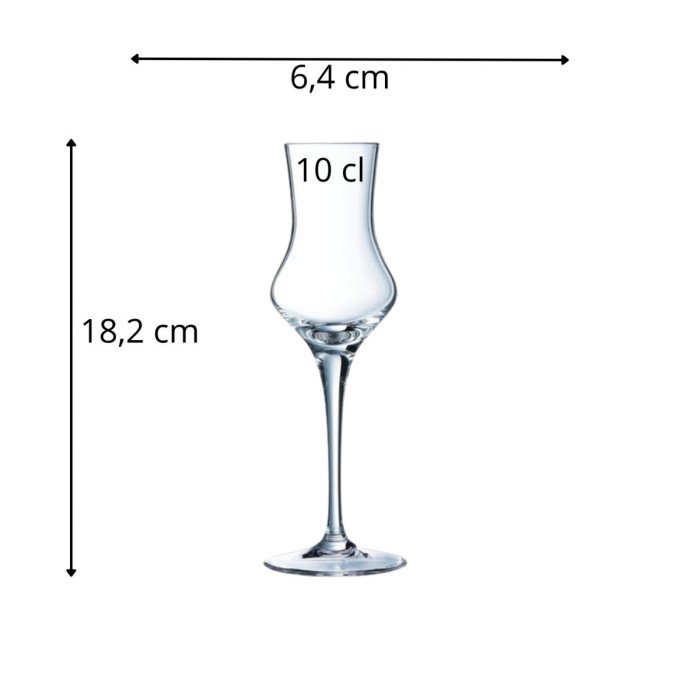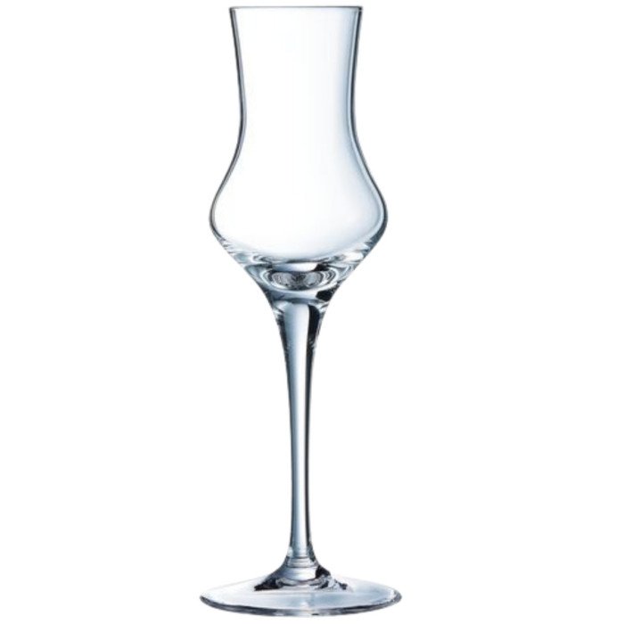 The Stemmed Spirit/Grappa Glass 10 cl from Chef & Sommelier is specially designed for enjoying distilled spirits. The design focuses on enhancing the drinking experience by emphasizing the aromas and flavors of these spirits. 10 cl (centiliters), ideal for serving distilled spirits such as grappa, schnapps, or other strong liquors in measured portions. The smaller capacity is perfect for savoring intense, aromatic spirits in small amounts. The tulip-shaped bowl is narrow at the rim and slightly wider at the base, which allows the spirit to breathe and intensifies the aromatic experience. The material ensures that the glass remains resistant to scratches, maintains its crystal-clear appearance, and stands up to frequent use. The flared rim directs the aromas toward the nose, making it ideal for appreciating the complex bouquet of grappa or other spirits. The long stem ensures the drinker can hold the glass without warming the liquid, preserving the ideal serving temperature. The 10 cl Stemmed Spirit/Grappa Glass from Chef & Sommelier is a must-have for spirit enthusiasts, designed to enhance the appreciation of premium distilled liquors elegantly and functionally.