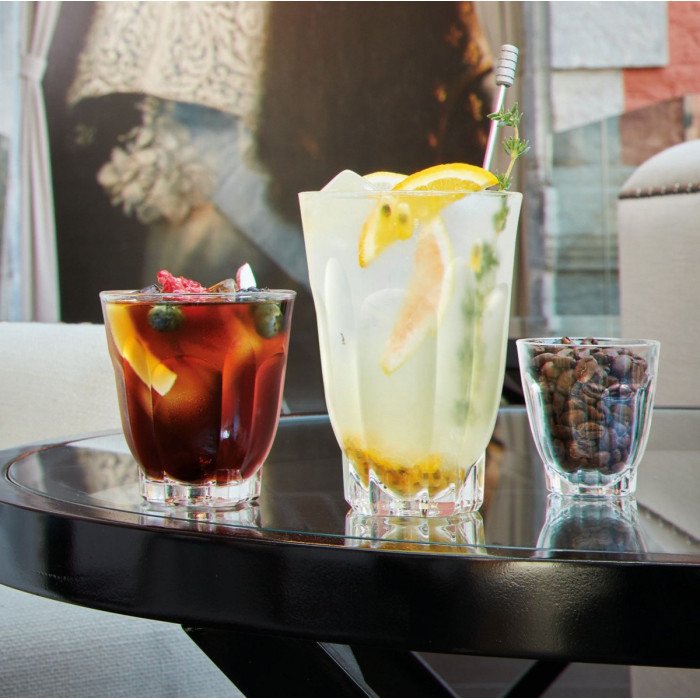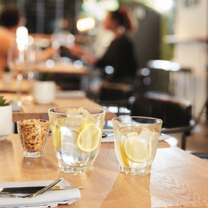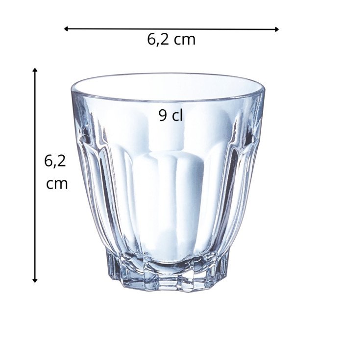 The Tumbler 9 cl Arcadie by Arcoroc is a compact glass, perfect for serving small portions. With a capacity of 9 cl (3 oz), this glass is ideal for serving small beverages. It’s also suitable for water alongside an espresso, or for small servings of juice or other concentrated drinks. The Arcadie tumbler has a simple, straight-sided design that’s easy to hold and fits well in settings. Its small size and durability make it an excellent choice for cafes, bars, restaurants, and home use.