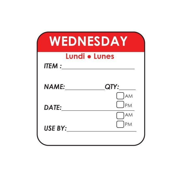 WEDNESDAY SQUARE REMOVABLE LABEL ROLL OF 500 L5 X W5CM