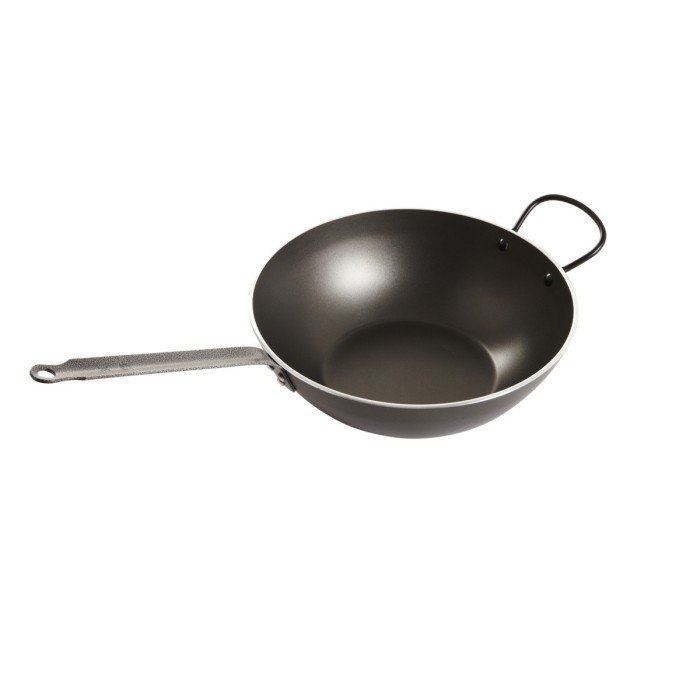 Thick aluminium with multilayer non-stick coating. Riveted extra resistant sheet steel handle with hole for hanging. Excellent heat transmission and distribution.